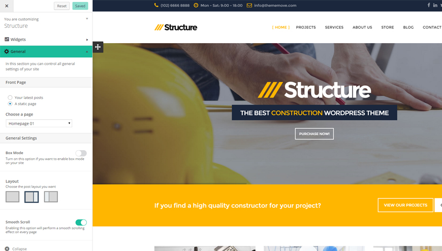 Live customizer is a new and interesting feature that provide customer ability to live preview those changes before saving. The transcendence of live customizer is that you can see every change while this activities does not affect the live version of your site. You can change the colors, layout type, text or even images, your website is still safe.